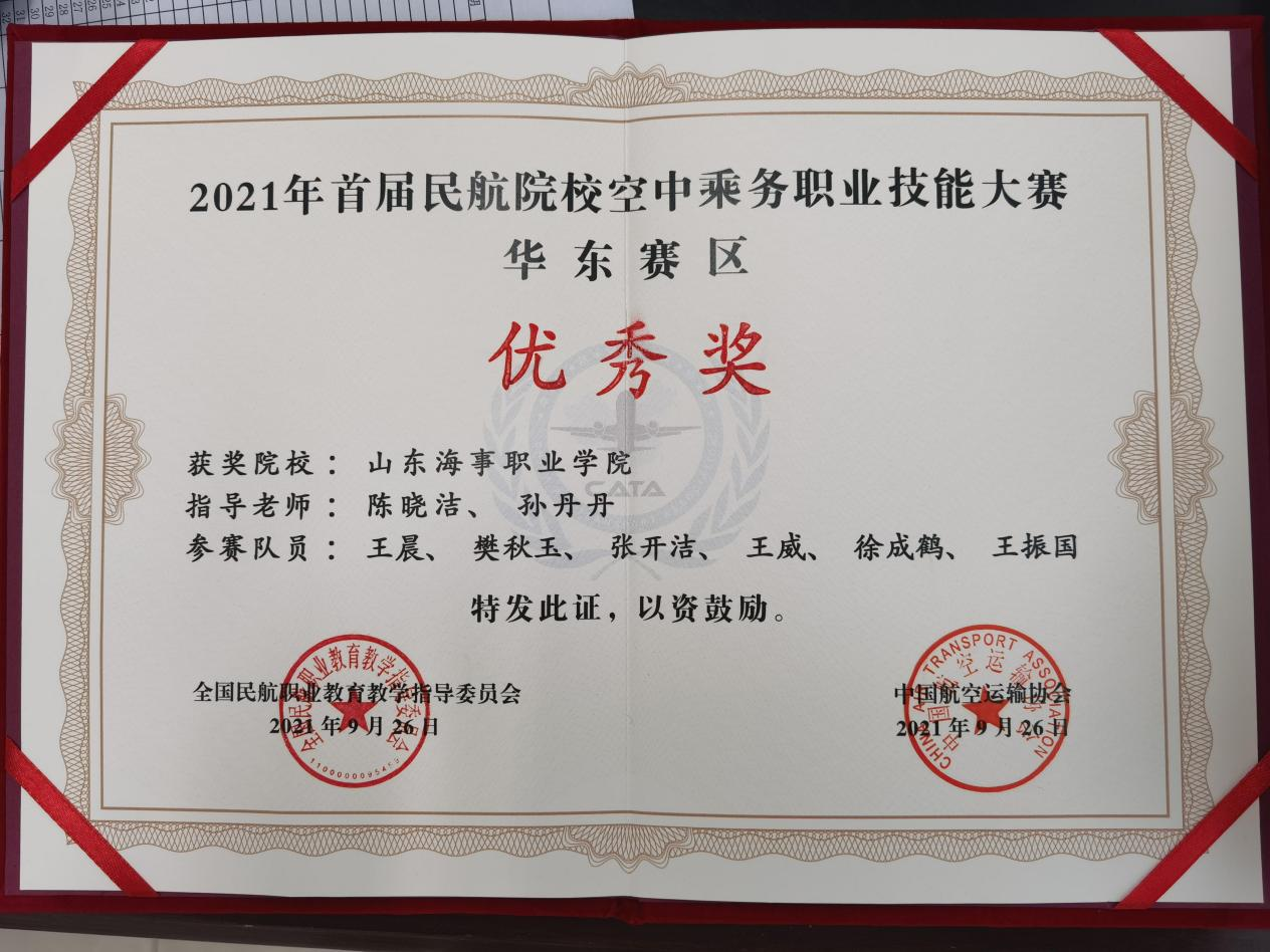 在陈晓洁和孙丹丹老师的带领下,参赛小组的6名成员从基础入手,以典型工作任务的客舱安全与服务核心技能为参赛方向,以理论知识,综合能力,模拟仓安全服务为主要备赛内容,进行了为期24天的训练。期间,同学们刻苦钻研业务技能,认真掌握各个知识点,熟悉各个比赛环节,最大限度地展示了山东海事职业学院航空学子的优良风貌和技艺水平,最后荣获优秀奖,陈晓洁、孙丹丹两位老师获优秀指导教师称号。比赛期间,师生们还与民航系统教育培训机构及其他学校师生进行了多方接触和交流,认识自己的不足,相互取长补短。