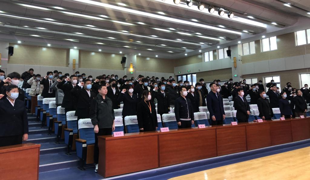12月14日下午,我校在图书馆报告厅举行2021年新团员入团仪式。学校副校长仉继航出席仪式并做发言,团委副书记郑晓龙,各二级学院团总支书记及2021年新团员代表参加仪式。