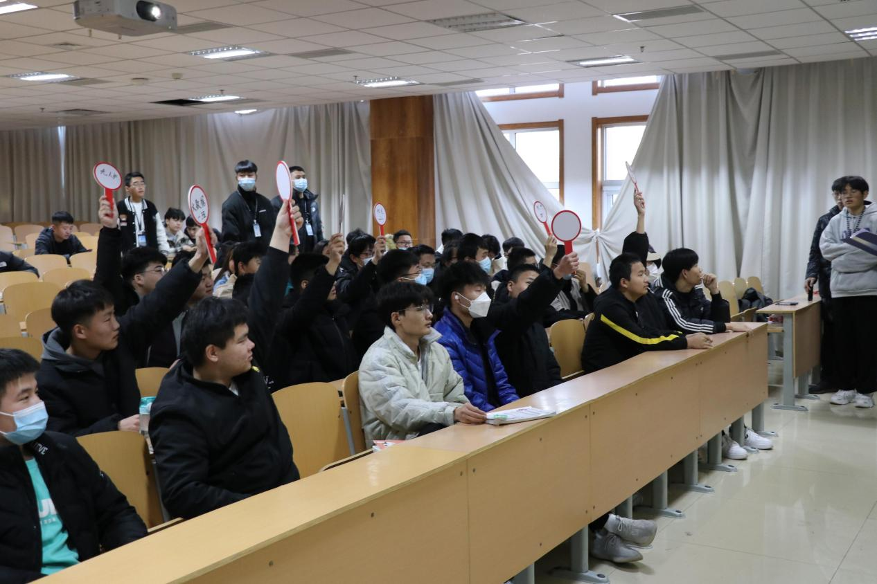 12月19日机电工程学院在第三信息化教室举办“奋斗百年路,启航新征程”党史知识竞赛,推进校园党史学习教育走深走实。本次党史知识竞赛采取举牌抢答制。为落实竞赛公平公正的原则,给所有参赛选手良好的竞赛体验,所有抢答题目均由电脑随机抽取,竞赛内容涵盖党的各个时期发展的历史。