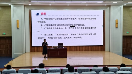 举办此次培训讲座,旨在希望广大团支书和心理委员能够更好地帮助同学们解决了人际交往与人际关系等方面的心理困扰,为广大学子身心健康发展打下良好基础。