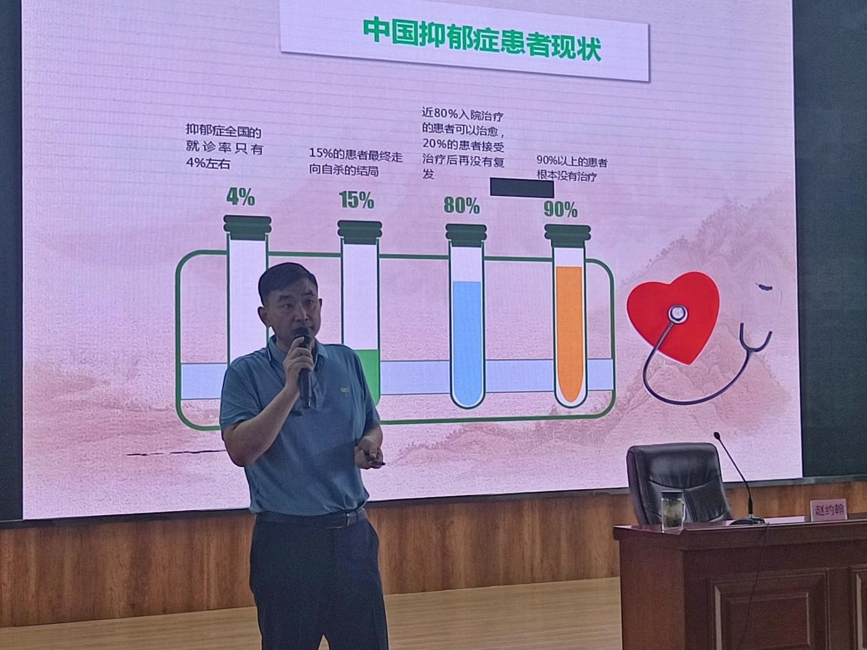 赵约翰博士是山东省医师协会心身医学分会常务委员、山东省医学会心身医学分会委员、潍坊市医学会心身医学专业委员会主任委员、强迫症个体与团体治疗专家,有着丰富的一线工作经验。在讲座中,赵博士为大家普及了关于抑郁症的知识,向我们详细介绍了什么是抑郁症、如何认识抑郁症、如何克服抑郁症、如何治疗抑郁症等几个方面的问题,还分别介绍了抑郁症的发病情况及人们对抑郁症的认识、抑郁症和其他心理疾病的区别与关系、如何识别抑郁、如何对待抑郁症患者等相关心理知识。