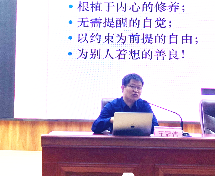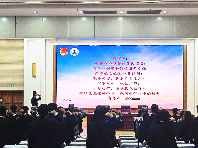 仉校长讲话结束后,学校第十二届学生会主席杨浩杰带领全体同学进行宣誓,仪式结束后,学生处副处长王冠伟以“榜样的力量”为主题开展集中授课。