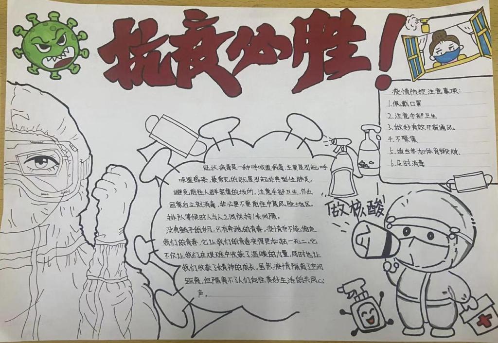 同学们将自己的心灵之声绘画到创意独特的手抄报上,在学院内形成浓郁的“防范疫情,从我做起,自觉践行”的疫情防控氛围。此次手抄报活动使同学们在绘制手抄报的同时增加了疫情防控知识储备,树立了良好的健康理念,增强了自我保护本领。