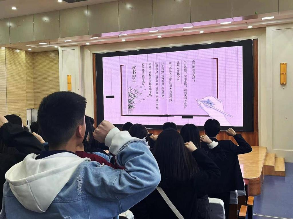 启动仪式上,系部主任王春艳在致辞中介绍了本次读书活动的意义,并希望同学们以读书分享活动为契机,在学好专业知识的前提下,多读书,读好书,进一步开拓视野,遇见更好的自己。随后,全体师生起立集体诵读了《读书誓言》。仪式结尾,同学们还带来了诗朗诵《我爱读书》《未来的路》,歌曲《一生有你》《真的爱你》,爵士串烧和独舞等节目。