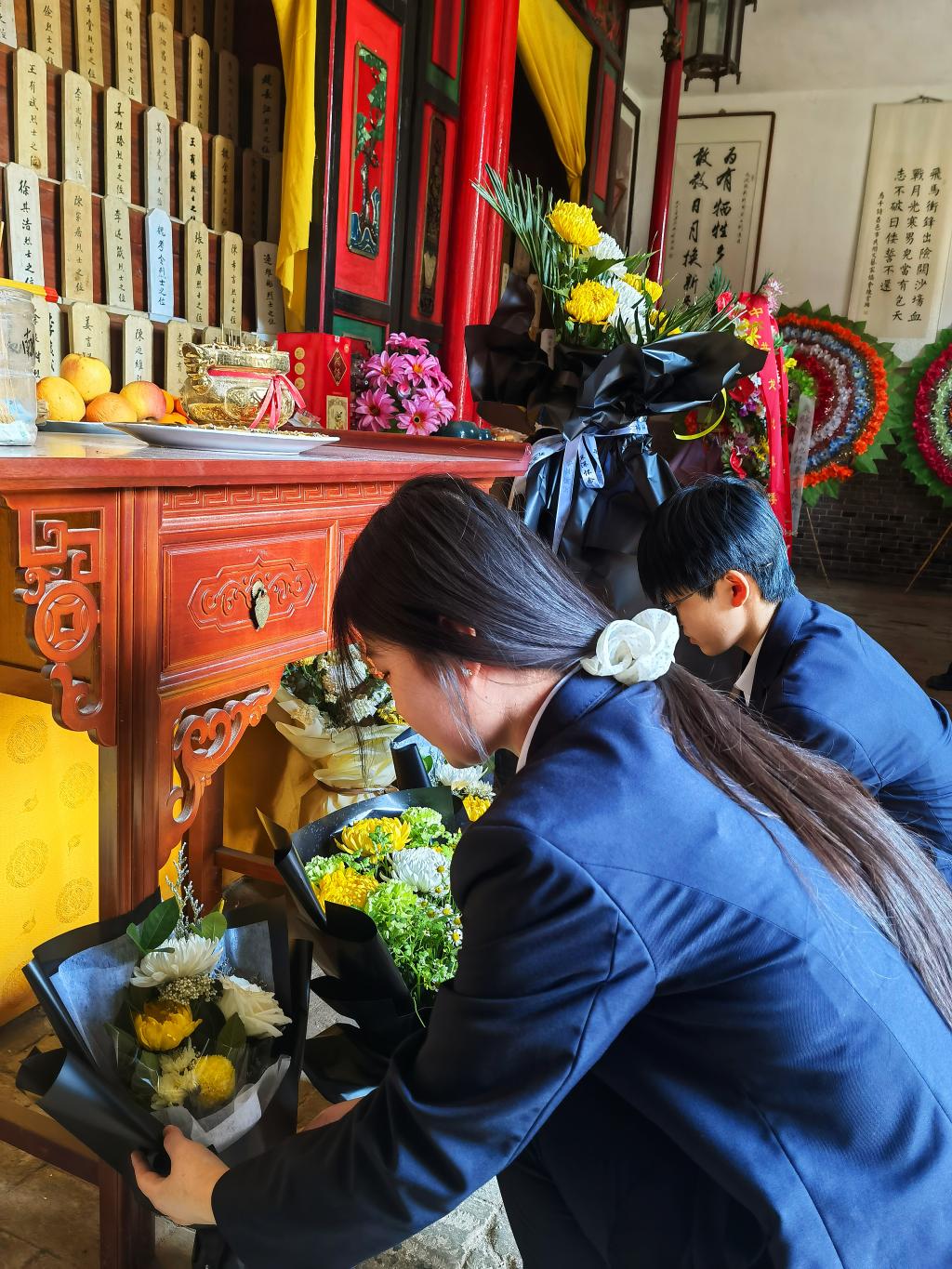 上午9点,大家肃立在烈士祠前,认真聆听守祠老人魏铁良对革命历史和英雄事迹的讲解,在老人的带领下全体人员向为中国的民族解放和人民革命事业英勇献身的革命先烈默哀致敬,并由学生代表向供奉于此的烈士牌位敬献鲜花,深切表达了对先烈的敬仰缅怀之情。随后,一行人参观了全武红色博物馆。博物馆中藏有历时20余年从全国各地收集而来的红色历史文物,包括领袖人物塑像、书报、文献、党史资料、画像、漫画、瓷器以及各种材质的毛主席像章等共计10万余件红色文化展藏。在王全武馆长的详细讲解下,同学们了解每个文物所蕴含的历史信息,重温了先烈们的英勇事迹和老一辈革命家艰苦奋斗的创业历程。同学们纷纷表示,要继承革命先烈的遗志,弘扬革命传统,传承红色精神,为新时代中国特色社会主义建设,为中华民族伟大复兴,贡献自己的青春力量。