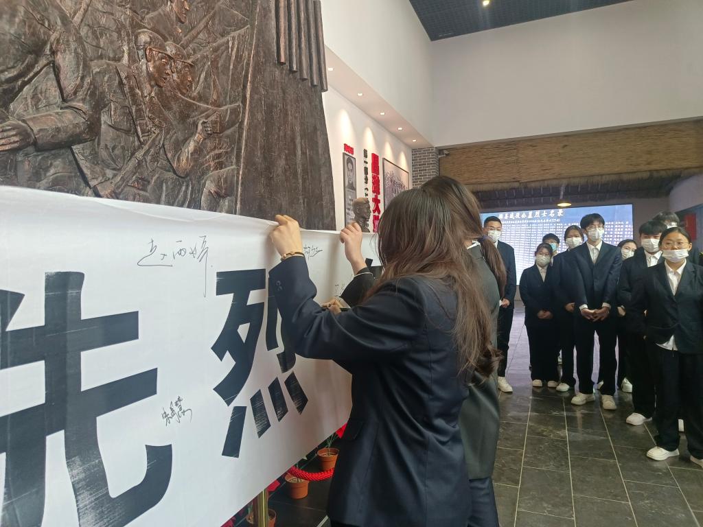 随后,全体同学整队缓步绕行,瞻仰烈士纪念碑、轮流上前献花、参观烈士事迹陈列馆,深情缅怀英雄先烈的不朽功绩。