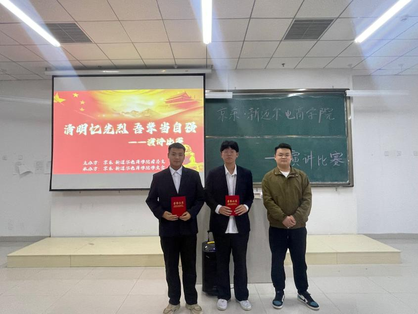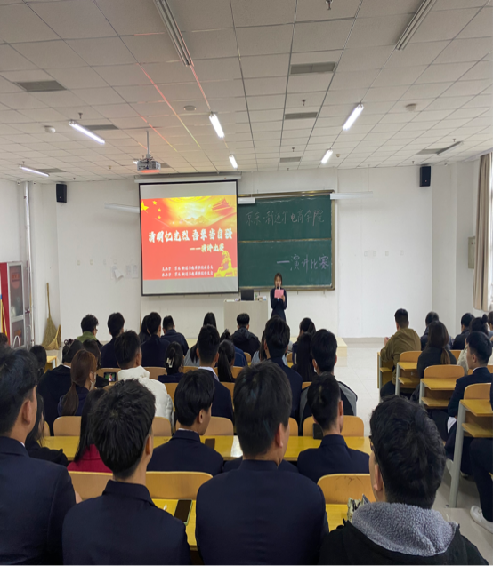 鲜花献英烈,哀思祭忠魂。为表达对英烈的崇高敬意和缅怀之情,追思英勇事迹、重温伟大精神,4月4日下午,电商学院组织2021级、2022级在校学生在4212教室举办了“清明忆先烈 吾辈当自强”主题演讲比赛。学院党支部副书记常潇允、团总支书记赵晓琨、全体辅导员老师出席比赛。