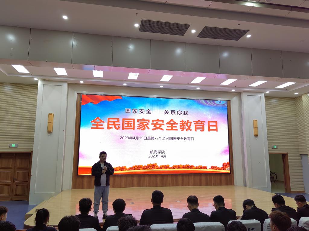 今年4月15日是第八个全民国家安全教育日。今年的活动主题是“贯彻总体国家安全观,增强全民国家安全意识和素养,夯实以新安全格局保障新发展格局的社会基础”。为深入贯彻落实上级有关文件精神,全面深入地抓好校园安全管理和教育,进一步增强广大师生的安全防范意识,提高应对突发事件能力,防患于未然,助力推进平安校园、和谐校园建设,航海学院于4月10日至14日开展了一系列内容丰富、形式多样的活动,其中包括;开展安全知识竞赛答题活动;组织学生观看“国开大讲堂·国家安全教育公开课”;开展“反邪教警示教育进校园”宣传讲座;组织观看“千万师生同上一堂国家安全教育课”为主题的公开课等。让学生在参与活动的过程中,树立安全意识,掌握安全知识,提高自护自救能力。