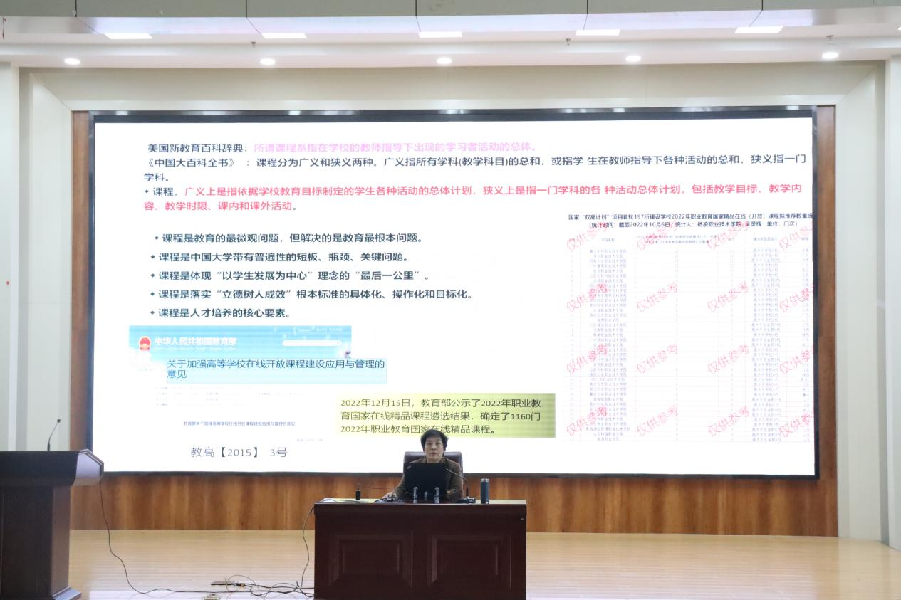 曾教授指出,专业是人才培养的基本单元,课程是人才培养的核心要素。讲座中,曾教授对在线精品课程建设和申报的政策、建设情况以及申报过程中的基本要求、指标等方面进行了详细的讲解,并结合淄博职业学院等“双高”院校的优质课程建设案例和自身在课程建设、资源库建设过程中的经验,就在线精品课程的建设和申报过程做了细致剖析。