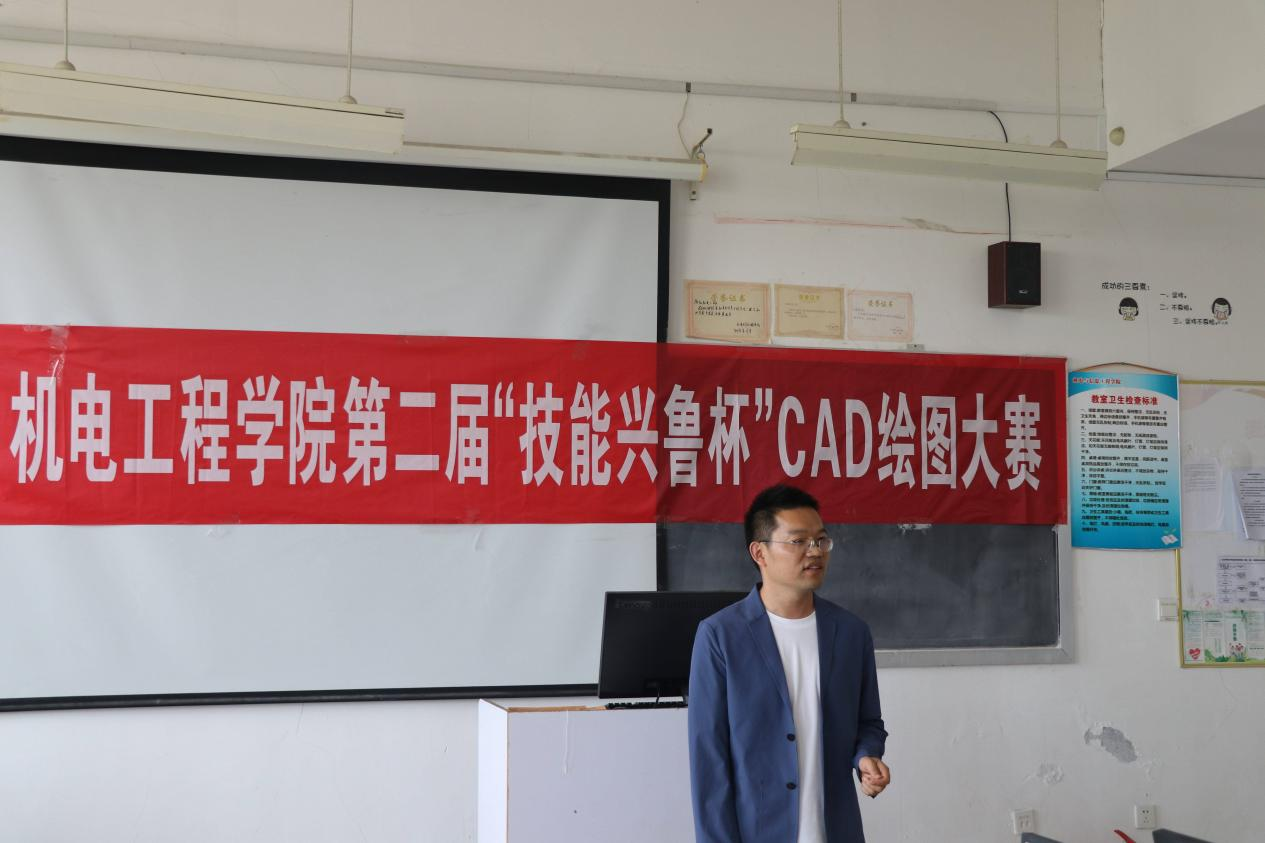 为强化学生核心能力,培养创新思维,增强实践技能,机电工程学院于5月17日在一号教学楼1317实训室举办第二届“技能兴鲁杯”CAD绘图大赛。机电工程学院院长助理张晓建出席比赛,机电工程学院吴勇老师、王岸青老师、蒋艳红老师担任比赛裁判。