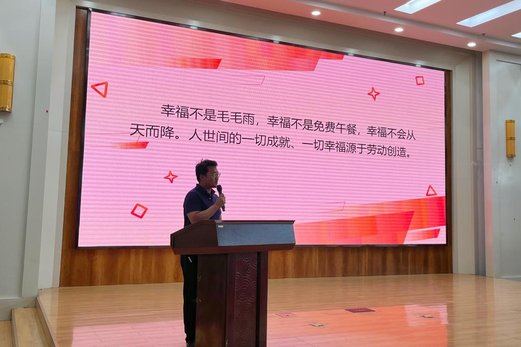 理论宣讲主要考察参赛选手宣传阐释能力和演讲感染力,注重理论宣讲的政治性、理论性、导向性。参赛选手采用抽题的形式确定宣讲主题,宣讲时间限时5分钟。比赛中,选手们围绕“一切幸福源于劳动创造”“行则将至,作则必行”两个主题,通过讲政策、讲理论、讲案例的方式,结合社会热点、国内外时事,从小角度讲清大道理、从身边事讲好硬道理,呈现了一场灵活生动、内容丰富的思想政治理论课。赛后,学生工作处副处长王冠伟对宣讲情况进行了点评。