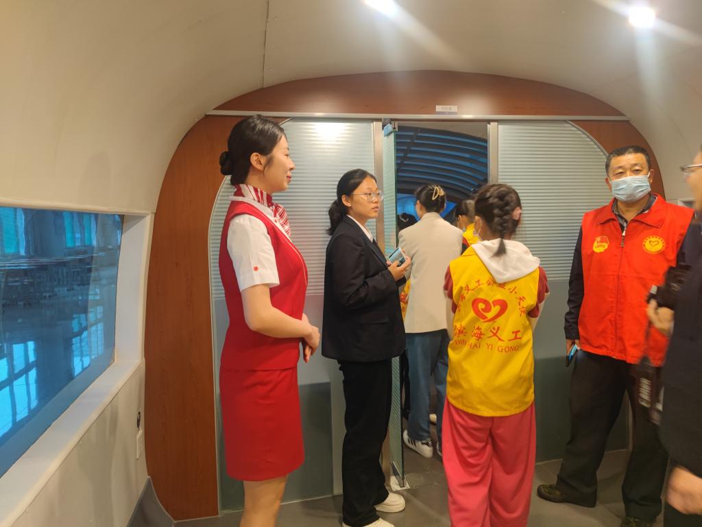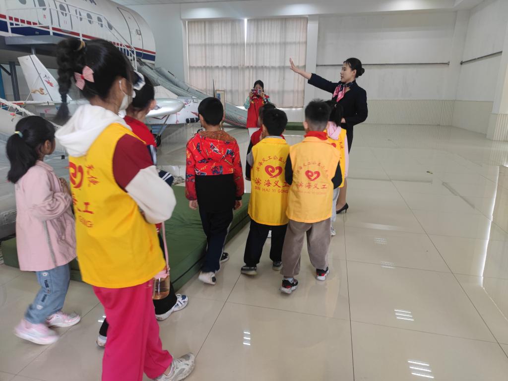 为了让孩子们更好地体验学习,航空学院学生们积极组成志愿服务队,为孩子们进行专门引领和讲解,带领孩子们体验了航空综合服务模拟训练舱、高铁综合服务模拟训练舱、航空舱门训练器、航空陆地紧急撤离舱、VIP候机厅、地面值机安检设备等。