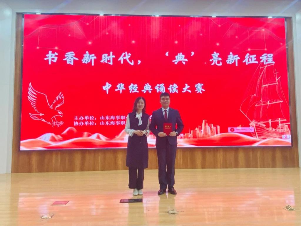 近日,我校 “书香新时代 ‘典’亮新征程”中华经典诵读大赛在图书馆报告厅隆重举行,本次比赛由基础部承办、校团委协办。经激烈角逐,大赛共决出一等奖1名,二等奖2名,三等奖3名。其中《我们爱你啊,中国》获得一等奖;《沂蒙花开》等获得二等奖;《青春中国》等作品获得三等奖。
