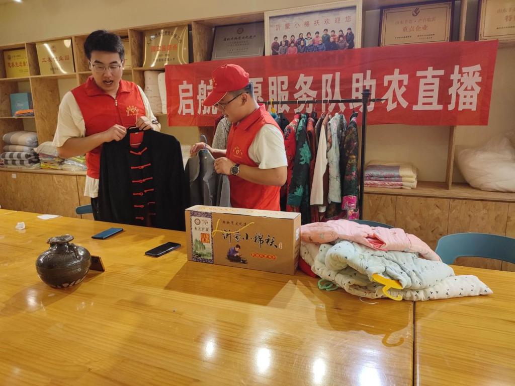 为助力乡村振兴,志愿者们在省级非物质文化遗产“沂蒙小棉袄”文化基地进行了助农直播,志愿服务队成员“大黄”“小周”担任此次直播的主播。直播中,他们首先对当地特色进行了讲解,然后又为观众们宣传了沂蒙小棉袄的背景文化、手工制作过程及承载的意义,积极与观众互动推广宣传沂蒙小棉袄文化特色。直播结束后,村民们纷纷表示此次直播效益很好,为村里起到了积极正向的宣传作用。新兴的销售模式也使得志愿者们进一步感受到了乡村振兴的意义。