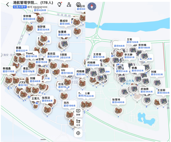 游戏参与者利用地图定位开启实时共享,在规定范围和时间内进行游戏,“老鼠”一旦被“猫”抓到就变身为“猫”,游戏结束后,若“老鼠”全部被“猫”抓了,则“猫”胜出;如果还有幸存的“老鼠”,则“老鼠”胜。晚6点半,随着发起人一声令下宣布游戏开始,大家纷纷进入地图中,夜幕笼罩下,影影绰绰的静谧的校园夜景又让这个游戏增添一些刺激感。“猫队伍”跃跃欲试准备抓捕,“鼠队伍”也开始寻找隐藏点,追逐大战一触即发。在经过激烈角逐后,鼠队伍凭借机智“走位”获得胜利。