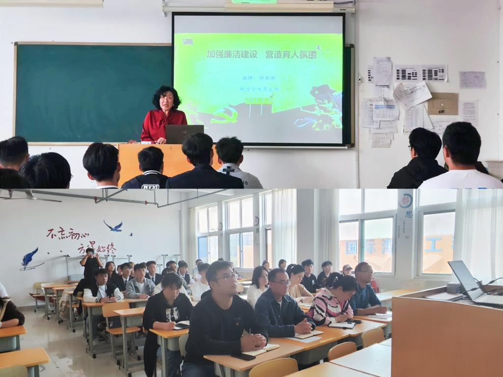 在“加强廉洁建设,营造育人氛围”主题党课上,航空学院党支部书记马云芹结合日常实际,从正反两个方面详细梳理了师生廉洁的风险点,进一步强调了加强校园廉洁文化建设的意义。