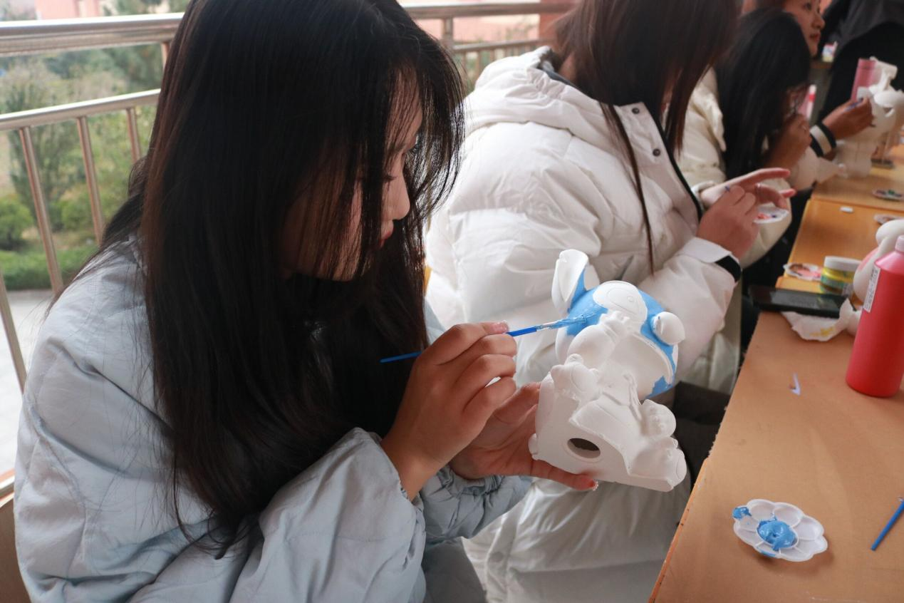 在现场,同学们挥毫笔墨,一幅幅俊秀的书法、秀美的绘画作品跃然纸上,一件件蕴含巧思的手工创作充满了青春的活力和独特的个性,让现场琳琅满目精彩纷呈。有音乐才艺的同学在现场一展歌喉,活动现场还有很多有趣的DIY涂鸦、手工作品展示等等,热闹的气氛吸引了许多老师和同学驻足参与,老师与同学们一道写字画画,表演才艺,整个连廊都笼罩在了欢乐的氛围中。