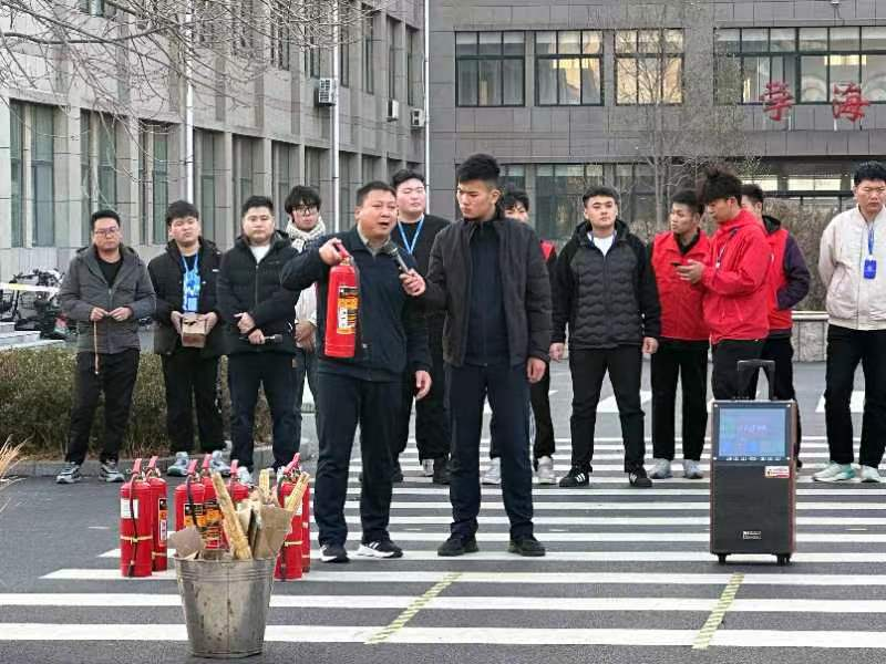 学校安全管理处孟凡明老师向师生介绍了灭火器的正确操作步骤和使用方法,讲解了一般性火灾的施救措施,随后由师生代表陆续操作灭火器进行了现场模拟灭火演练。学生们在体验中增长了消防知识及技巧,强化了安全意识。