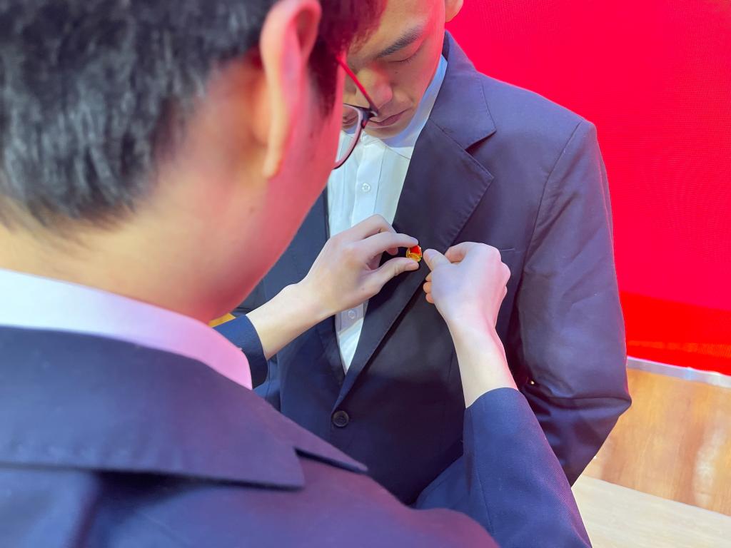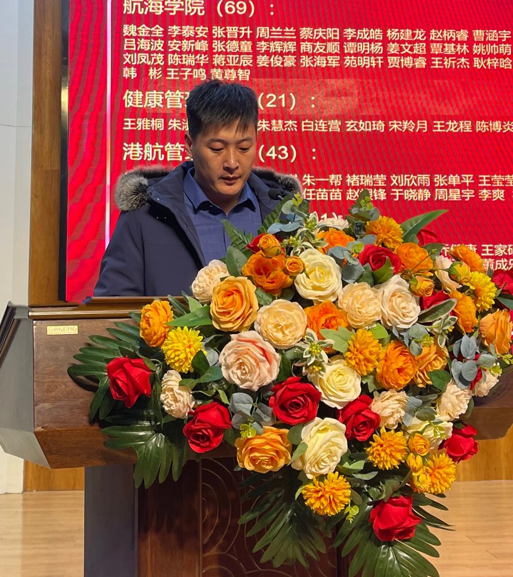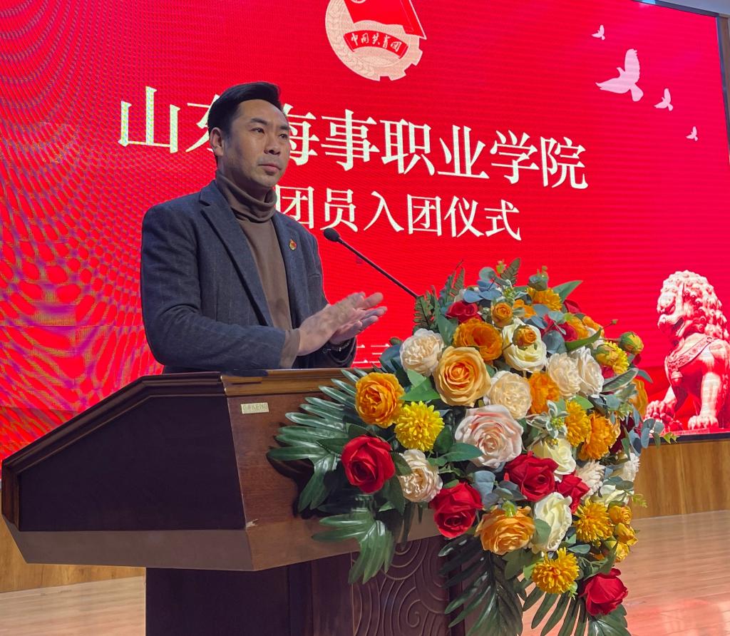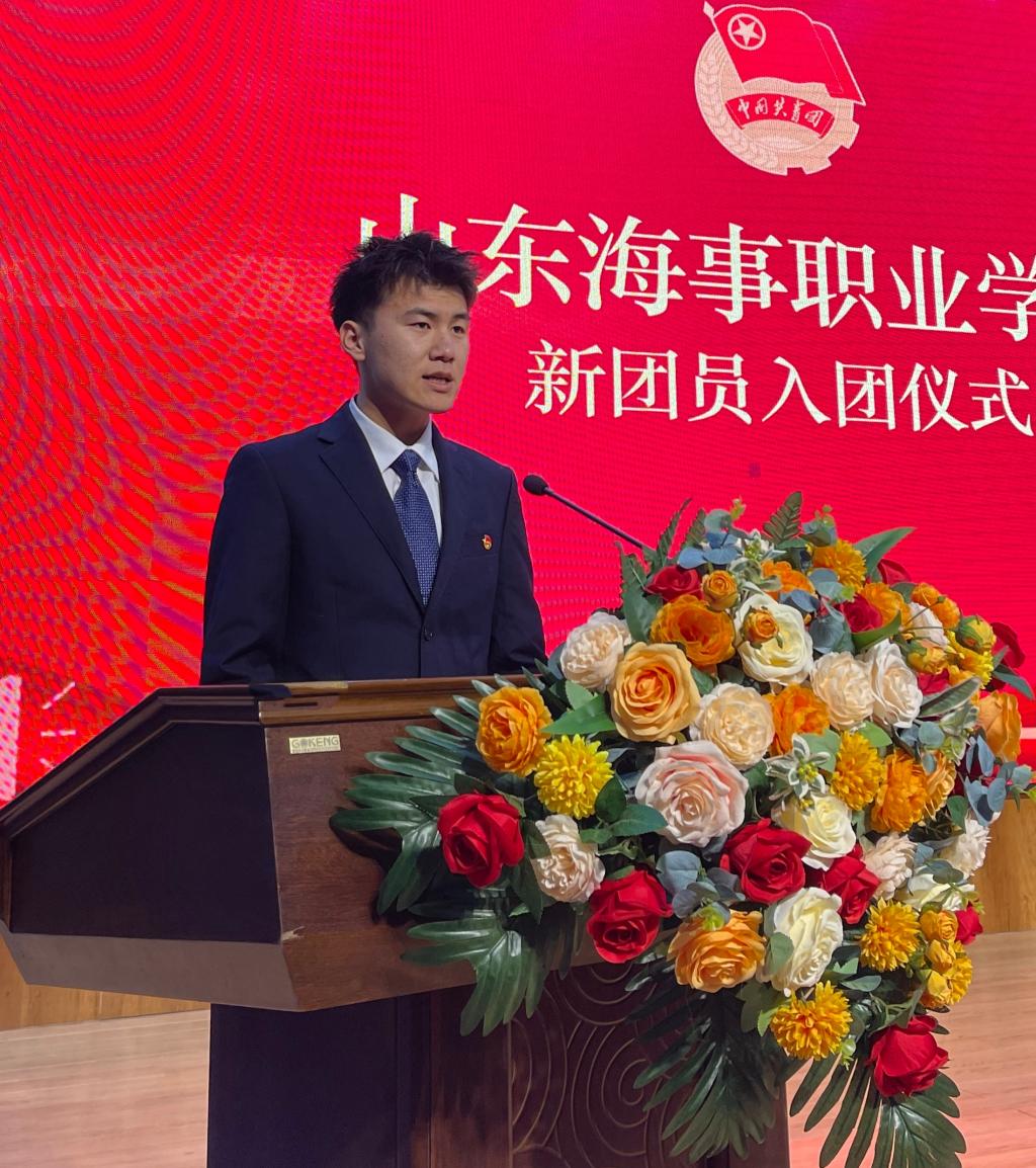 仪式在庄严而激昂的国歌声中拉开帷幕,团委副书记郑晓龙宣读2023年新团员名单;老团员代表为新团员代表颁发团员证、佩戴团徽;港航管理学院刘欣雨同学作为新团员代表带领全体同学进行入团宣誓;邮轮游艇学院李帅仪同学作为新团员代表发言。最后,党委委员、副校长仉继航对新加入团组织的同学们表示热烈祝贺,并向新团员提出了三点要求:一是要树立远大理想,做有志青年;二是要德才兼备,全面发展;三是要勇担责任,做好表率。他勉励大家在新时代的浪潮中,要共同汇聚青春力量,共筑青春梦想!
