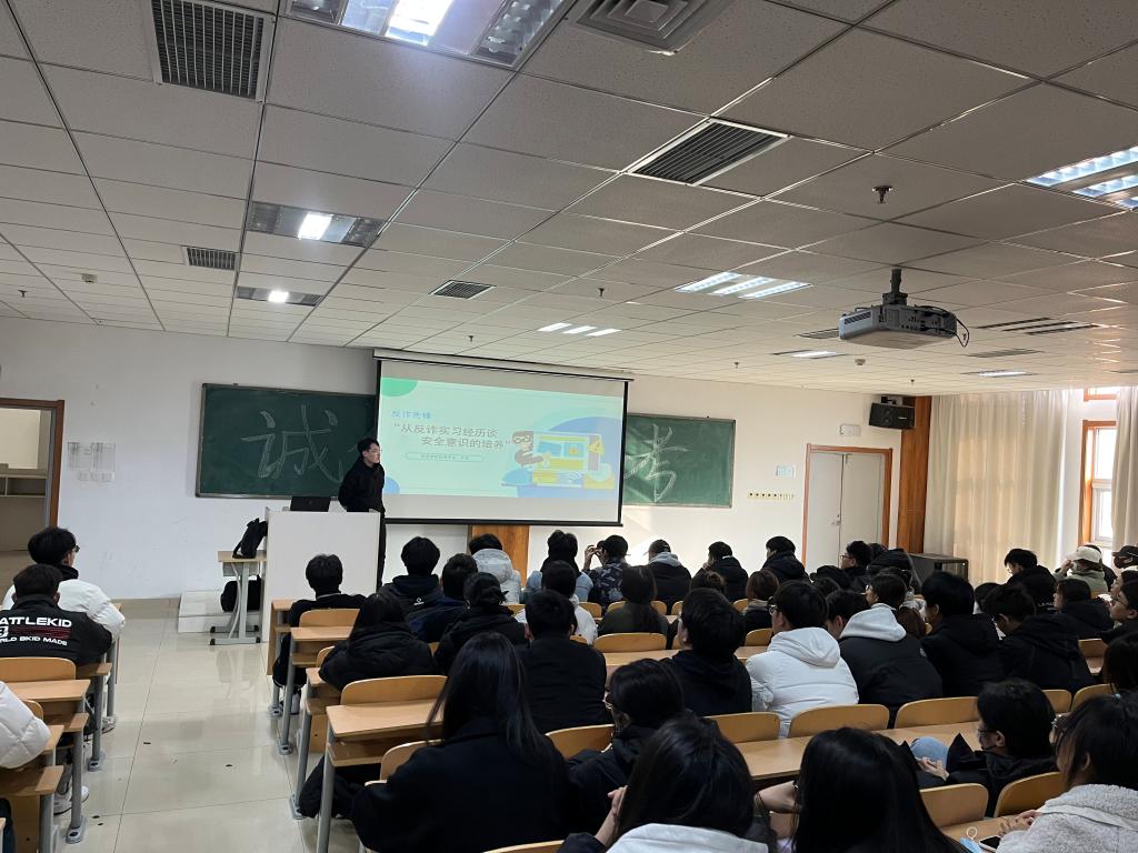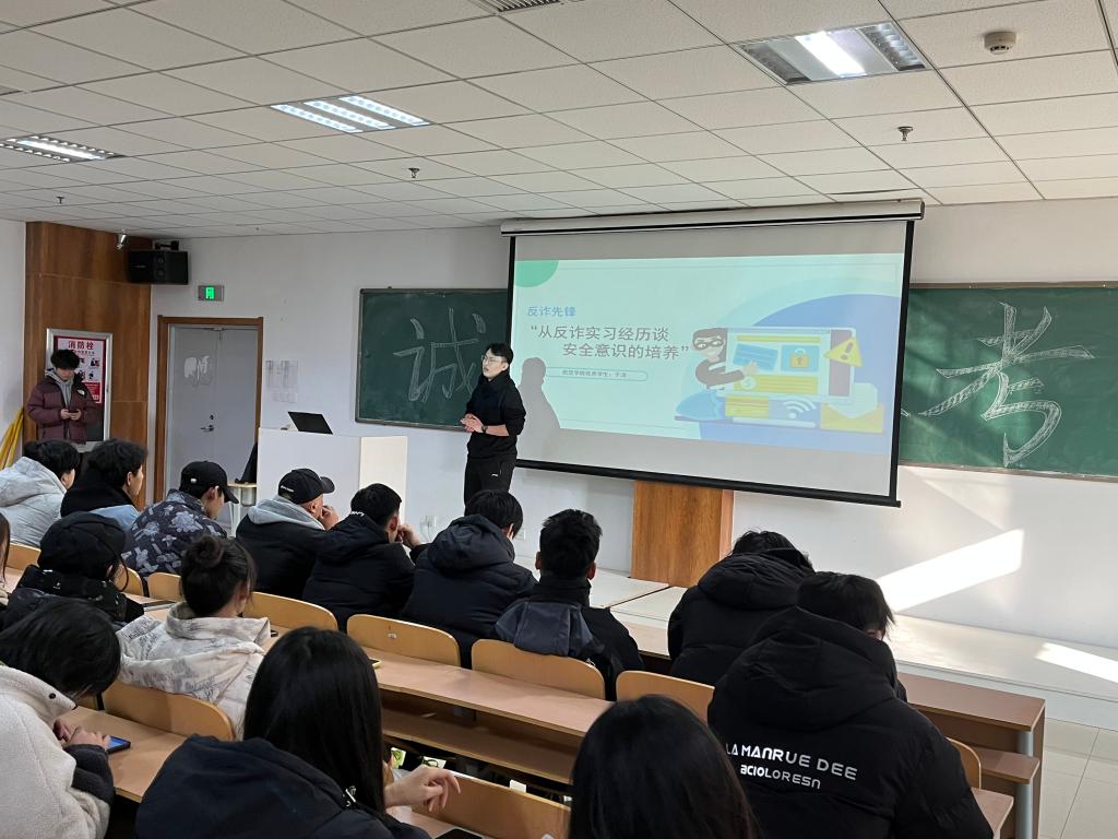 实习期间,于洋深入了解了各类诈骗手段和防范方法。他不仅积累了丰富的实践经验,还与公安干警们共同处理了多起诈骗案件。他对反诈骗工作的热情和专注,赢得了实习单位的高度赞誉。分享会上,于洋同学详细介绍了诈骗的种类、手法及防范措施。他结合真实案例,生动讲述了诈骗的危害性和防诈的重要性。同时,他还向同学们传授了一些实用的防诈技巧,提醒大家要时刻保持警惕,不轻信陌生人的信息,不随意透露个人信息。临近寒假,此次讲座对提高学生自身的安全防范意识和应对能力具有重要教育意义。