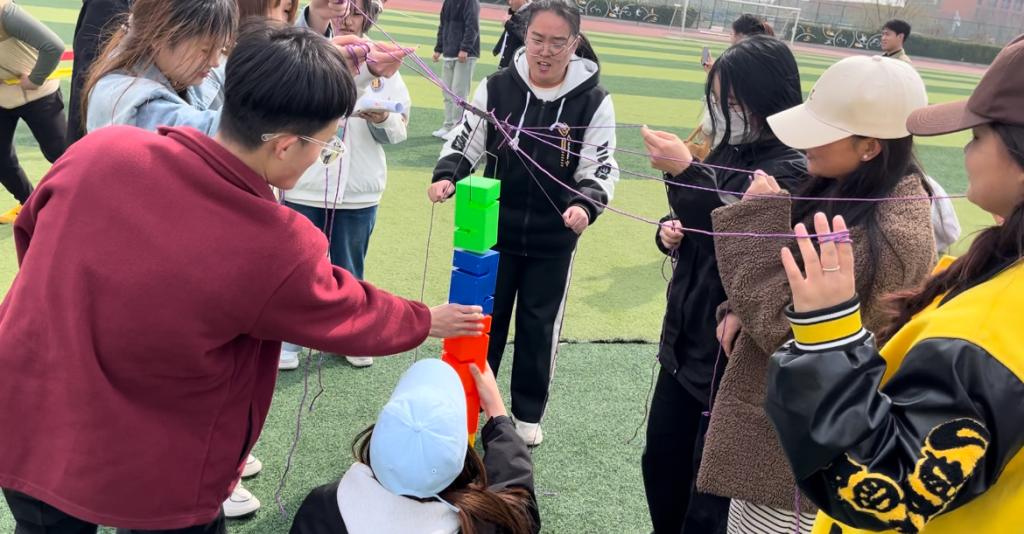 活动共设置了搭建高塔、珠行万里、摸石过河、东南西北跑和公鸡下蛋等项目,各班分别派出代表组队参赛。在项目进行中,各小组积极讨论获胜方法,不断克服问题和困难,团结一致,密切配合,共同完成一个个比赛项目。赛场上下一片欢腾,阵阵加油声、欢笑声,此起彼伏。