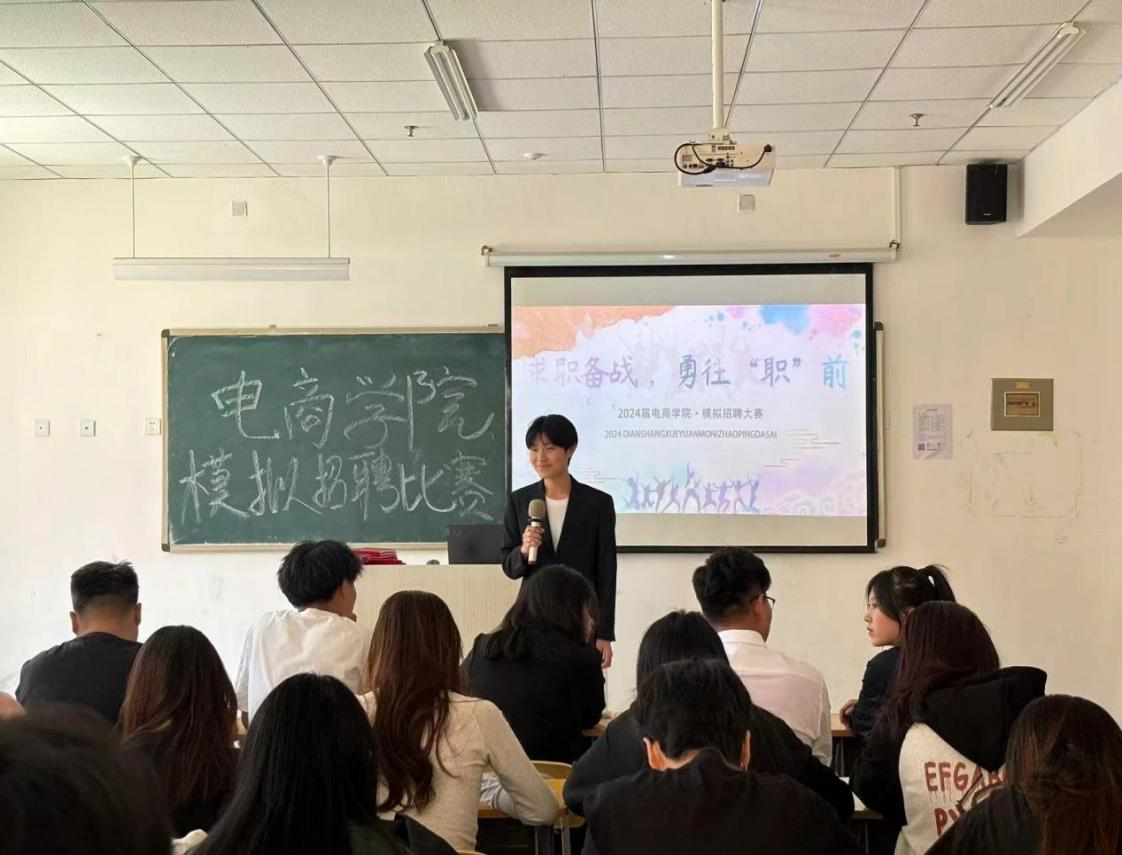 4月28日,电商学院在4号楼4207教室面向本院学生举办第一届“求职备战,勇往职前”模拟招聘比赛。