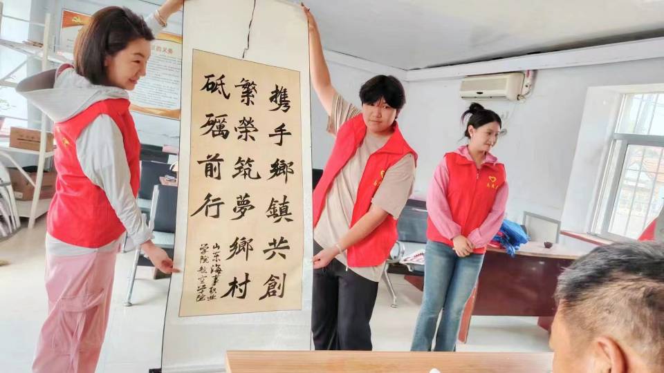 7月12日,航空学院“红鹰”社会实践团在威海市文登区,深入乡村、社区和企业,与当地干部群众进行了广泛深入的交流,通过问卷调查、访谈等形式,了解了当地经济发展、教育医疗、文化建设等方面的情况。调研过程中,队员们认真倾听基层群众的声音,仔细记录他们的需求和建议,为后续形成调研报告积累了丰富的素材。调研结束后,实践团充分发挥专业优势和特长,为当地居民和基层单位送上了一份特别的礼物。受到了大家的热烈欢迎和高度赞扬,让传统文化的芬芳在广袤的田野间绽放。