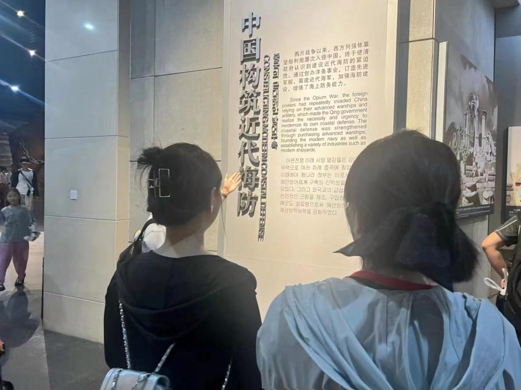 在纪念馆内,丰富的文物、详实的史料以及逼真的场景复原,生动地展现了甲午海战的全貌。同学们认真聆听讲解员的解说,驻足于一幅幅珍贵的历史图片、一件件饱经沧桑的文物前,思绪被带回到那个战火纷飞的年代。