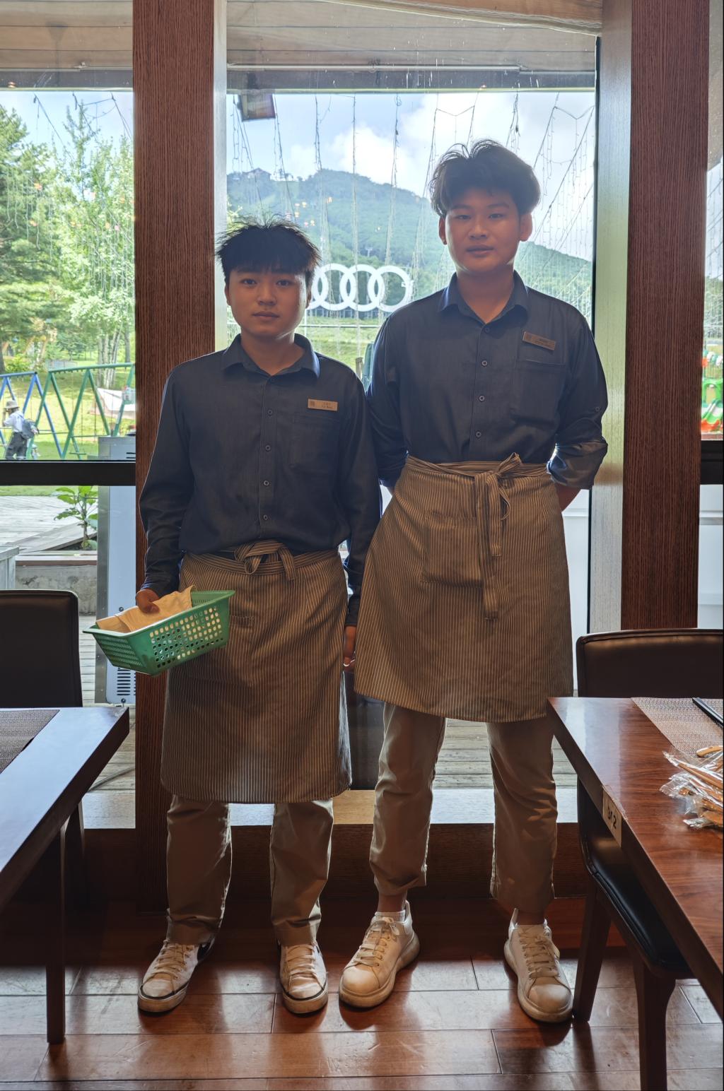 另一边,自助餐厅内,23级酒店管理与数字化运营专业3班的陈昭屹和2班的王浩宇同学正忙碌而有序地引导客人就餐。他们表示:“在自助餐厅的实践让我们深刻体会到了团队协作的力量,以及如何在繁忙中保持高效与秩序,这对我们的专业成长有着不可估量的价值。”