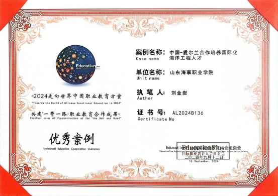 开幕式上,职业教育对外合作与交流等系列成果发布,学校获评职业教育对外交流与合作典型院校,并当选“世界技能发展联盟成员单位”和“中塔技术技能提升建设联盟第一批发起单位”;代理校长徐立清受聘为“中老国际职业教育专家委员会”中方专家委员;学校作为第二批乍得国家职业标准公共营养师(4级)独立开发单位,出色完成公共营养师4级职业标准和公共营养师(高职)专业教学标准开发,被评为“乍得职业标准开发优秀建设单位”;学校申报的工作案例《中国—爱尔兰合作培养国际化海洋工程人才》获评“2024年走向世界中国职业教育方案——共建‘一带一路’职业教育合作成果”优秀案例,全国共197家职业院校获评职业院校国际合作与交流优秀案例,其中山东省13所。此次入选的优秀案例,将作为大会重要成果,在大会期间举办的新时代中国高职院校高质量发展竞争力展进行展示宣传,并邀请社会主流媒体报道宣传,并且将作为“2024亚太职业院校影响力指数星级院校”推荐的重要依据。