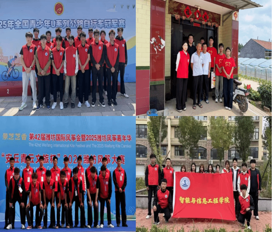 一是党建+思想铸魂,筑牢信仰根基。创新“数字党建”学习模式,依托“学习强国”“线上云课堂”等平台,结合智能技术开展红色经典数字化解读、党史知识AI答题等活动,让理论学习更具学科特色。校园文化活动精彩纷呈:2025年智能与信息工程学院举办“春韵鸢上绘”“雷锋摄影”活动、“一站到底”党史竞赛、“凝聚民族心,共筑中国梦”主题演讲等共12项文体活动,30多次志愿者服务活动。这一系列活动营造出积极向上、充满活力的校园文化氛围。定期组织赴红色教育基地研学、邀请行业党员专家讲党课,开展“智信青年谈初心”主题研讨,推动党的创新理论入脑入心。