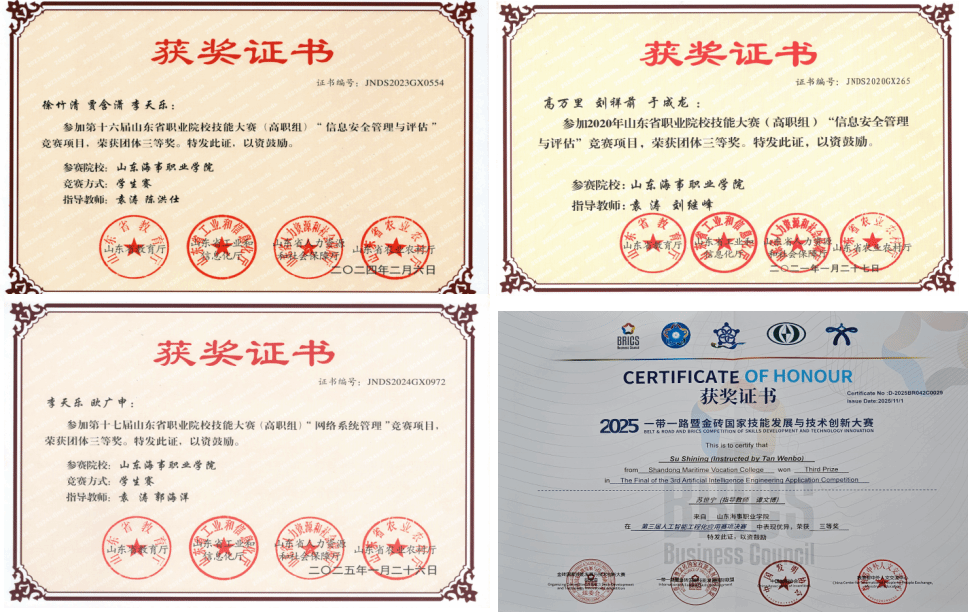 二是党建+专业赋能,激活发展动能。以党建引领专业内涵建设,聚焦人工智能应用、信息安全等前沿领域,组建“党员科研攻坚队”,牵头或参与省市级以上科研项目5项,获专利、软件著作权3项。以赛事彰显发展动能,承办2025年山东省“技能兴鲁”数字工程师职业技能竞赛数字化解决方案设计师S赛项,旨在为山东数字经济发展注入强劲的技能动能,学院师生在此次比赛中斩获教职工组一等奖1项,学生组一、二、三等奖各1项。